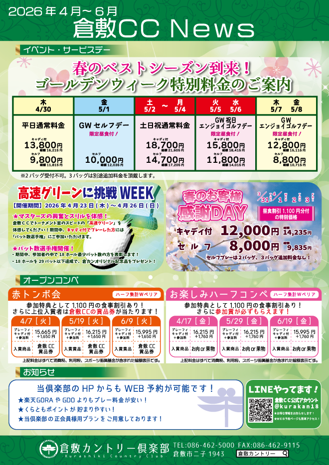 COPYRIGHT © 2013–2026 Kurashiki Country Club All Rights Reserved.